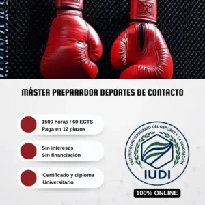 El Máster Preparador en Deportes de Contacto ofrece una formación completa sobre entrenamiento, técnicas, nutrición, psicología y gestión deportiva. Ideal para entrenadores, preparadores físicos y profesionales del deporte. Modalidad 100% online, título universitario y posibilidad de pago a plazos sin intereses. Flexibilidad total, sin fechas de inicio ni fin. Certificación universitaria avalada.