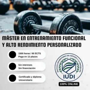 Máster online especializado en entrenamiento funcional y alto rendimiento personalizado. Aprende a evaluar, planificar y aplicar entrenamientos efectivos, adaptados a cualquier nivel o necesidad, con apoyo en tecnología, biomecánica y neurociencia. Modalidad 100% online, sin plazos, con titulación universitaria. Dirigido a entrenadores, fisioterapeutas y profesionales del fitness que buscan destacar.