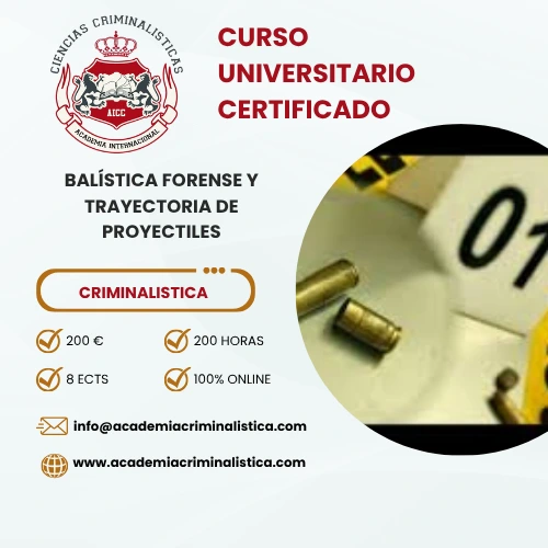 Curso universitario online en balística forense y trayectoria de proyectiles. Aprende sobre armas, disparos, trayectorias, lesiones, análisis de casquillos y redacción de informes periciales. Incluye casos reales, software de simulación y técnicas de campo. Certificación oficial universitaria y 8 ECTS.