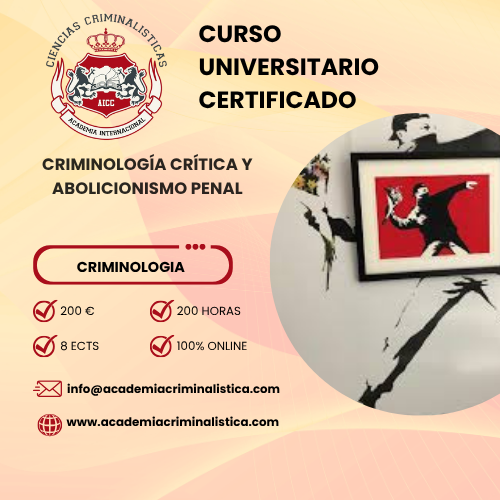 El curso está certificado por una universidad reconocida y se imparte en alianza con la Academia Internacional de Ciencias Criminalísticas (AICC). Modalidad 100% online, con acceso flexible, contenidos actualizados y acompañamiento académico. Equivale a 8 ECTS.