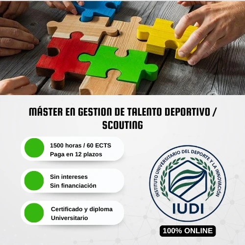 Máster 100% online para especializarte en scouting, análisis de jugadores y gestión de talento deportivo. Incluye pago a plazos sin intereses.